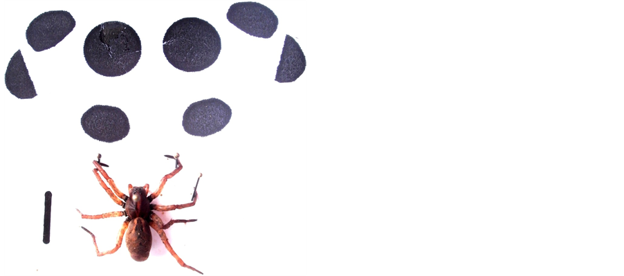 Plate 3. Showing family Agelenidae with eye arrangement (scale bar represent 1 cm).