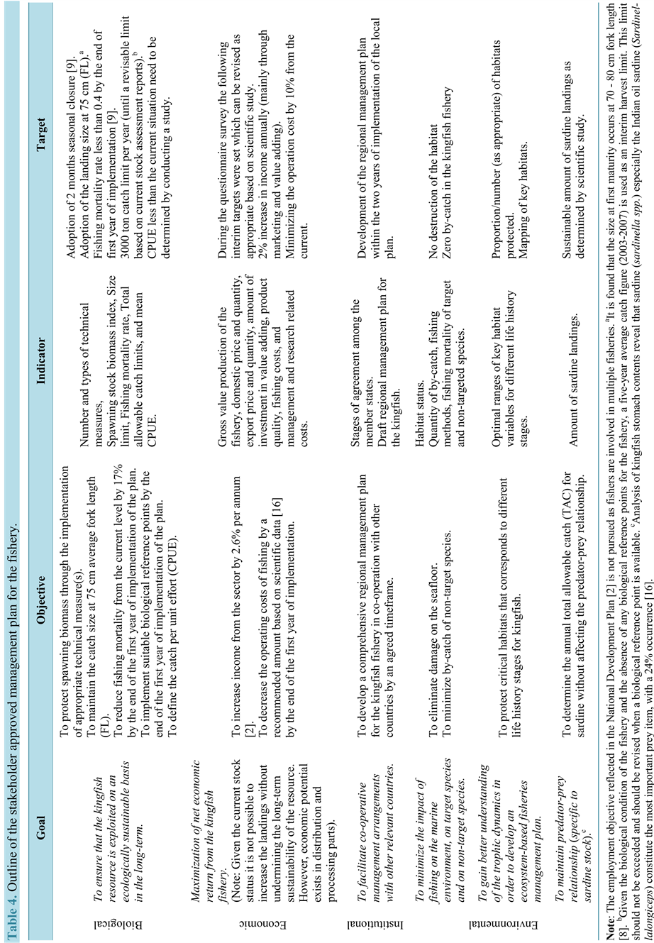 Table 4.Outline of the stakeholder approved management plan for the fishery.