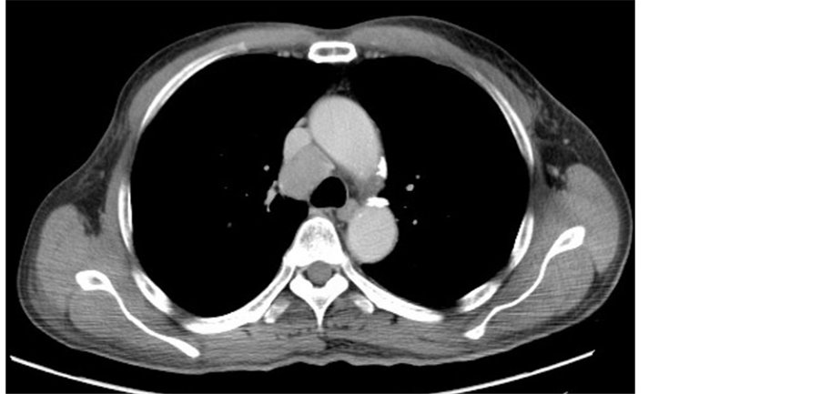 Figure 1. Computed tomography scan showing mediastinal lymph node adenopathy.
