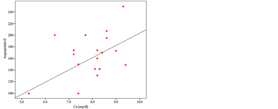 Figure 2. Positive correlation between Angiopoietin-2 and serum ca level.