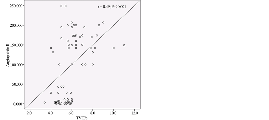 Figure 3 shows positive correlation between Angiopoietin-2 and TV E/e.
