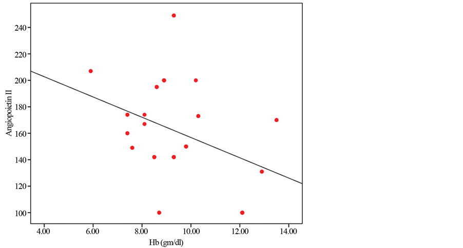 Figure 1 shows negative correlation between Angiopoietin-2 and hemoglobin level.