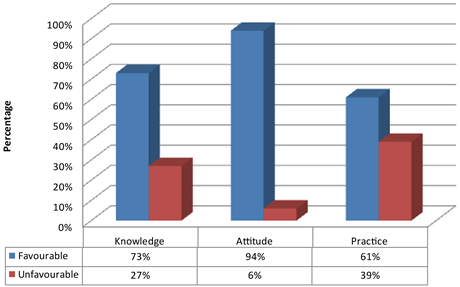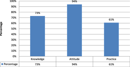 Figure 1. Average percentage of knowledge, attitude and practice in certain aspects of hospital acquired infections and infection control practices as answered by final year MBBS undergraduate students.