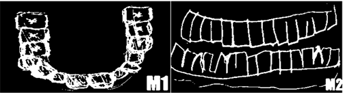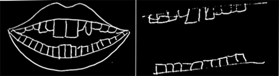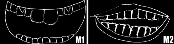 Figure 3. Drawings of a Patient which illustrates dental arcades converted to jaws and absence of lips in M1 and M2.