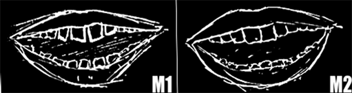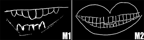 Figure 4. Drawings from a Patient which illustrates the decrease of the opening of the mouth subcategory, from M1 to M2.