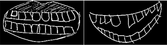 In this line of thought, the execution of the task (focused on the teeth category) was correctly perceived by the sample subjects, supported by the fact that only one of the subjects has drawn the teeth category with an orthodontic appliance applied.