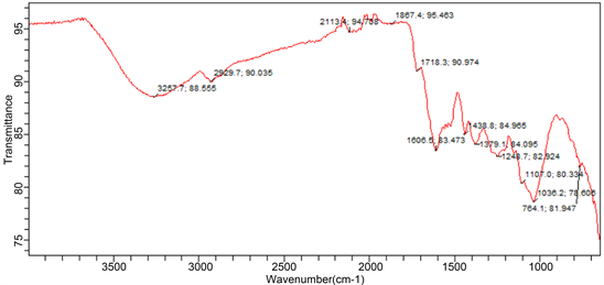Figure 6. Infra-Red (IR) Spectrum of Rothmannia whitfieldii fruit dry powder.