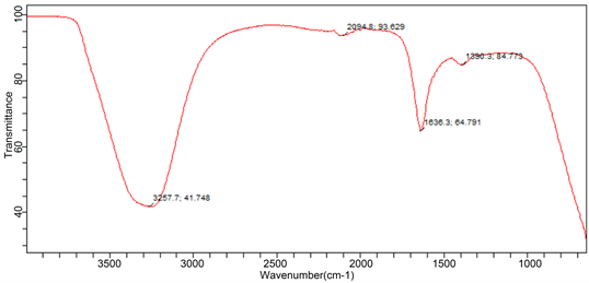 Figure 8. Infra-Red Spectrum of Rothmannia whitfieldii, extract with distill water at 60˚C.
