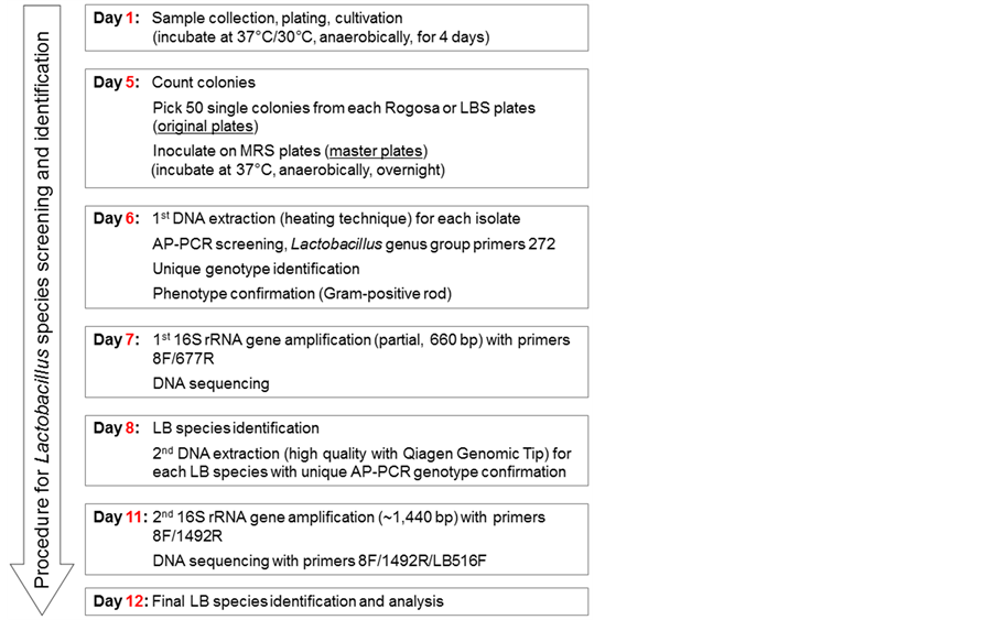 Figure 2. Flowchart of the culture-based component for Lactobacillus isolation, genotyping and species identification from clinical samples.