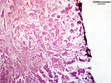 Figure 2. Positive surgical margin in intraoperative frozen section, black line indicate inked margin touched by tumor cells (Hematoxylin & eosin staining, 200x).