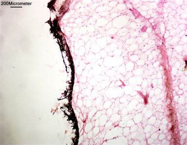 Figure 3. Negative surgical margin in intraoperative frozen section, black line indicate inked margin (Hematoxylin & eosin staining, 100x).