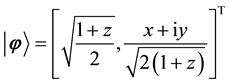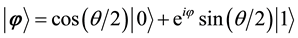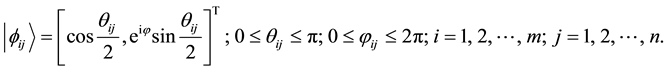 In BQPSO, all particles are encoded by qubits described on the Bloch sphere. Set the swarm size to m, and the space dimension to n. Then the i-th particle is encoded as
