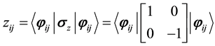 From the principles of quantum computing, the coordinates x, y, and z of a qubit on the Bloch sphere can be measured by the Pauli operators written as