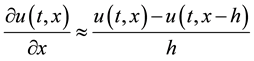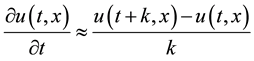We consider uniform grid spacing with step size h and k for space and time respectively,
