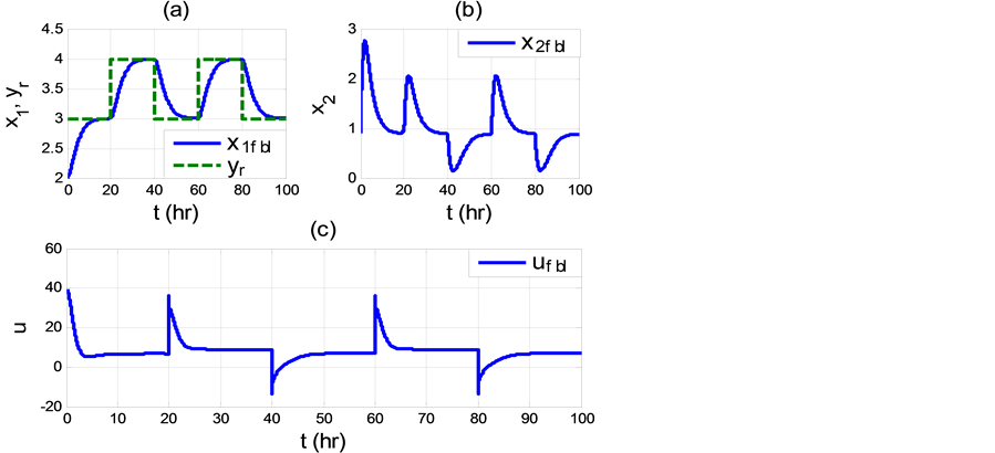 Figure 1. Responses of closed-loop bioprocess (23) under FBL control