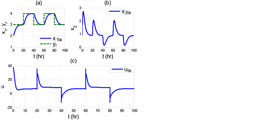 Figure 2. Responses of closed-loop bioprocess (41) under BS control