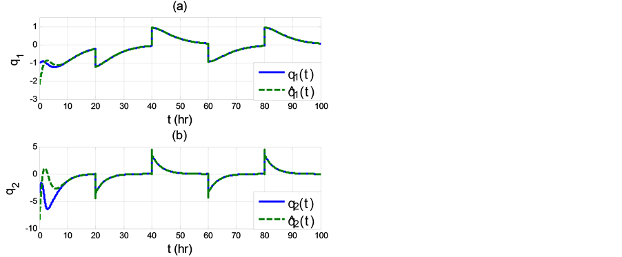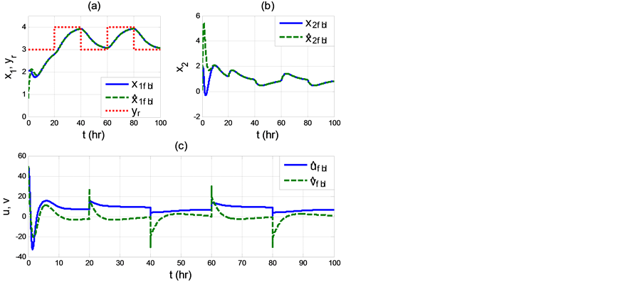 In Figure 5, results for observer-based FBL control scheme described by (47) and (48) are shown. It can be seen that the estimates