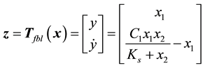 The paper is organized as follows. Section 2 presents the bioprocess model for control design. Theoretical foundation of input-output feedback linearization (FBL) and controller design are outlined in Section 3 with simulation results. Section 4 addresses the formulation and application of backstepping (BS) control with simulation results. In Section 5, simulation results are compared for both approaches, i.e., FBL and BS. Section 6 addresses the design of Luenberger observers for FBL and BS controls with simulations. The conclusions are presented in Section 7.