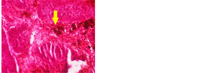 There are many varieties of BCC like Nodular BCC, PBCC, cystic BCC, superficial BCC, micronodular BCC, morpheaform, and infiltrating BCC of which nodular BCC is the most common variety. In a study of 1039 cases of BCC, Sexton et al. [6] found nodular 218 cases (21%); superficial 181 cases (17%); micronodular 151 cases (15%); infiltrative 77 cases (7%); and morpheic 11 cases (1%). Most common age of presentation is fourth to fifth decades of life with male preponderance (M:F = 3:2) [7] . Most common site of occurrence is the middle third of face. Other rare sites reported are areola of nipple by Han Jin Jung et al. [8] , subungual by RyuheiOkuyama et al. [9] and eyelids by Lily Koo Lin et al. [10] . Bart RS et al. [11] also noted that pigmented basal cell carcinoma is more common in dark eyed people and very rare in blue eyed people. Although metastasis is very rare, it was reported high in cases of PBCC of nipple-areolar complex due to increased lymphangiogenesis [8] . Histopathologically, there are cells arranged in nests and clusters with palisading of cells at the periphery and in a haphazard manner in the centre. The cells showed hyperchromatic rounded nucleus with little or no cytoplasm (Figure 4). Melanin pigment is seen dispersed among the nests and in the intervening stroma (Figure 5). Our patient is a 60-year-old female presented with mass over left ala of nose which is a common site for occurrence. Differential diagnoses of mass were malignant melanoma, basal cell carcinoma and seborrheic keratosis which can be differentiated and confirmed by cytology. Cytology of melanoma reveals scattered single cells with occasional loose cohesive groups, which are variable in size, shape and number of nucleus. The nuclei are eccentric with hyperchromatism, often macro nucleoli and atypical mitoses can be seen. Malignant melanoma can be differentiated by advanced immunohistochemistry by using immunomarkers HMB-45 and S-100 [12] . Histopathologically, seborrheic keratosis shows sheets of squamous cells with anucleate squamous and basaloid