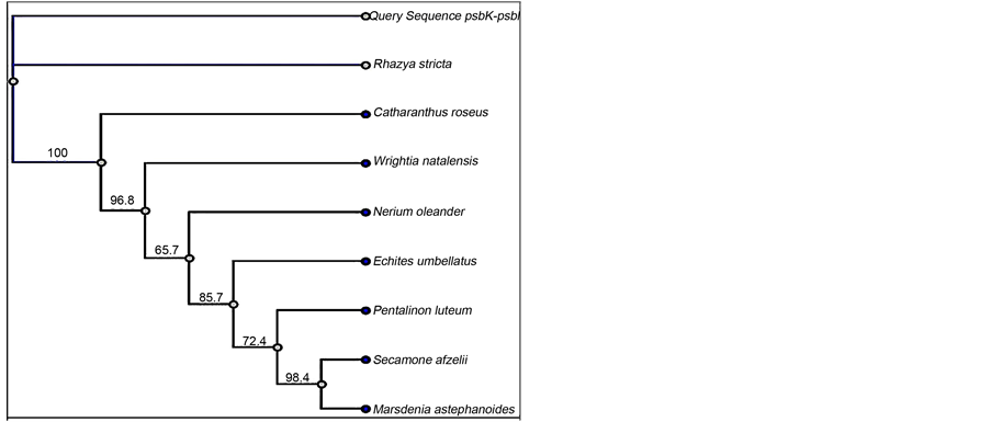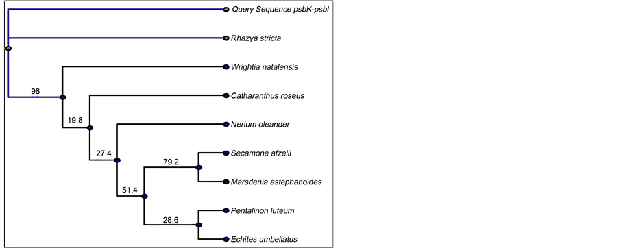 Table 5. Results of BLAST analysis for R. stricta psbK-psbI sample sequences, showing level of similarity with other neighboring species from the Apocynaceae family.