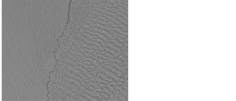 Major studies in respect of desert dynamics are mainly focused in and around vegetation or water bodies and changes occurring with respect to them. Dunes can either be stable or mobile as a function of vegetation and wind power. Unrestrained erosion is generally a feature of bare dunes. Stabilized dunes, on the other hand, do not undergo major changes in textures, and can thus facilitate the growth of vegetation [2] [3] . In the work by [4] , a combination of Digital Elevation Modeling and GPS guided field survey were used to obtain the base data about dunes. NDVI index was often used to monitor the growth vegetation and its relation to surrounding set- tlements. [5] used brightness index, semi-variogram, and other statistical data to analyze the changes in texture orientations. [6] has made use of Principal Component Analysis to detect changes in the images.
