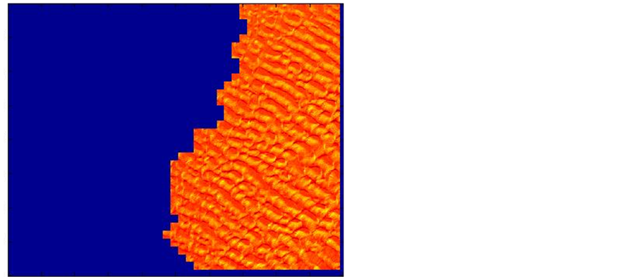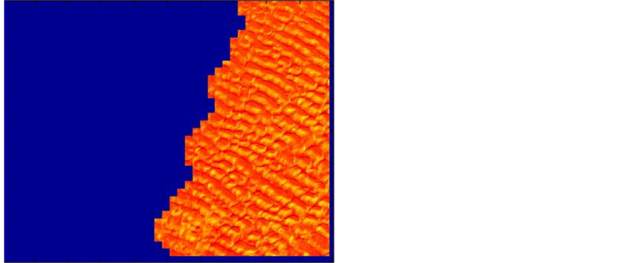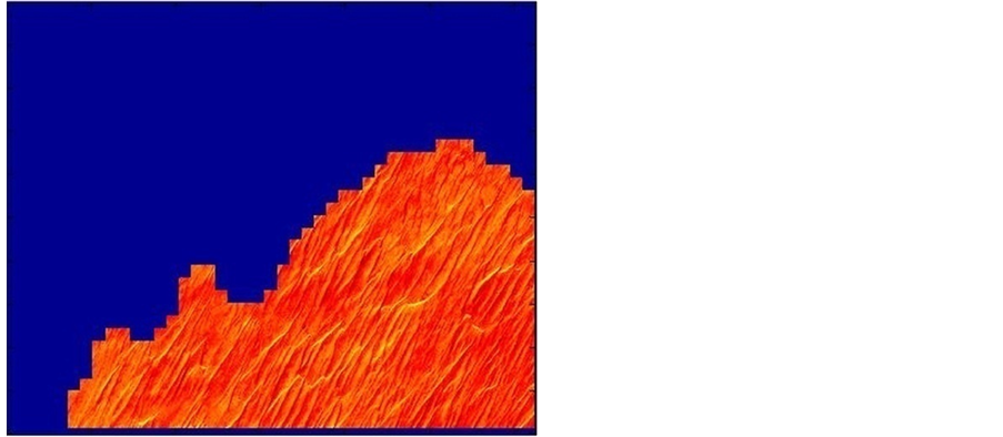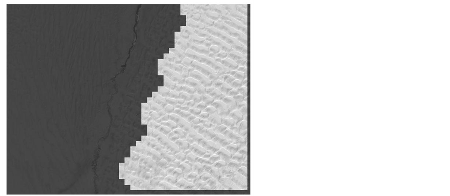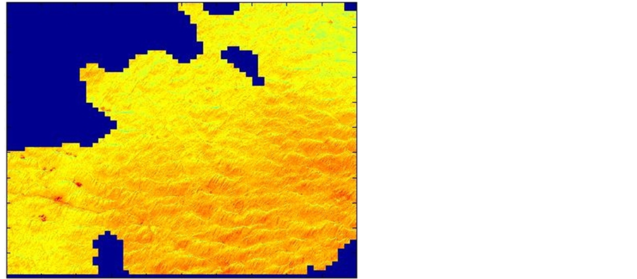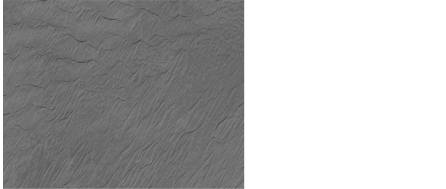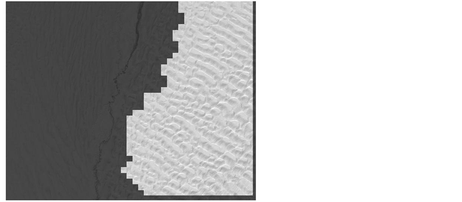 For the 2nd dataset (Figure 9 and Figure 10), imagery correspond to Thar Desert region in the north western region of India is taken. Figure 11 and Figure 12 show the corresponding clustered outputs respectively. The orange colored region in indicates the desert regions with diagonally oriented sand dunes, while the blue region indicates the sand dunes with horizontal orientation. Figure 13 indicates the difference output. As next dataset (Figure 14 and Figure 15), we consider another region of Thar Desert. Figure 16 and Figure 17 are the corres- ponding clustered outputs for the third dataset. The orange colored region in Figure 16 and Figure 17 indicates the desert regions with horizontally oriented sand dunes, while the blue region indicates the sand dunes with no