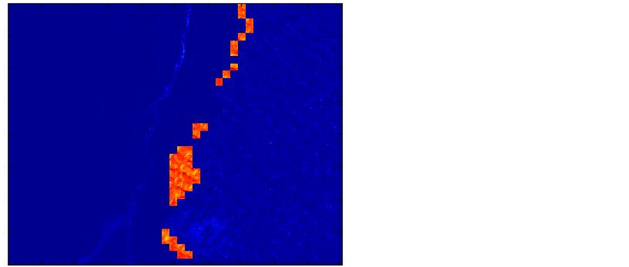 statistical features for each block. Next, each pixel is assigned the same attribute as that of the majority of pixels within a block. Thresholds are assigned empirically using trial and error basing on their ability to delineate dune patterns. A binary image is thus created for each feature. Once again, these discrete binary feature outputs are transformed into continuous feature output images using a recursive smoothing step. Finally, the texture clustered output is obtained by combining the feature outputs using logical “or” operator.