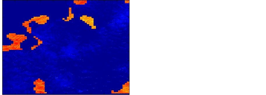 The datasets used for the experiments are summarized in Table 1. Figure 2 and Figure 3 are the images cor- responding to the Gobi desert of central Asia in China-Mangolia region. Figure 4 and Figure 5 indicate the corresponding clustered outputs obtained using the Clustering algorithm mentioned in Section II. The orange colored region in Figure 4 and Figure 5 encompasses the desert regions with horizontal orientation of sand dunes, while the blue region indicates the vertically oriented sand dunes. Figure 6 indicates the difference out- put which can be obtained using the Change Detection Algorithm in Section 2.