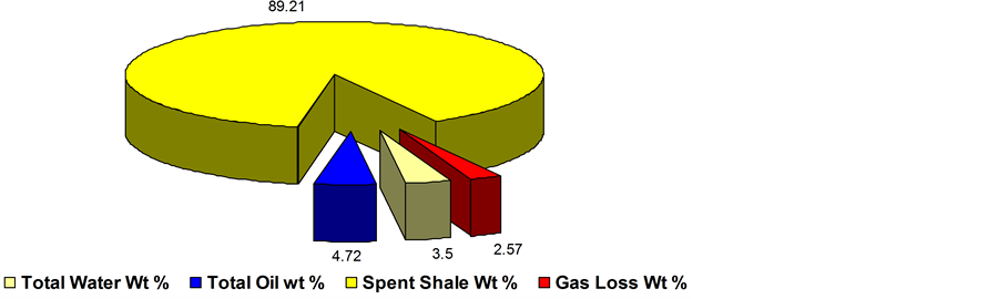 The results of Fisher assay analysis is presented in Figure 3. Over all, this OS type has quite higher moisture content, and lower oil content compared with that reported for similar material from Jordan by Alali [2] and Ibrahim and Jaber [5] . For the whole borehole, Alnawafleh et al. [15] reported that the oil content of OS in this borehole varies from 6% in the first 80 meters OS section to 11% in the remaining OS part.