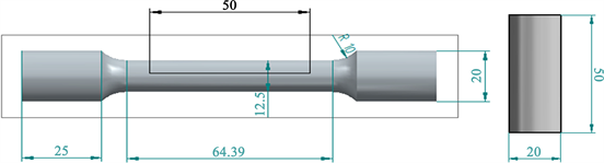 The specimen was machined as per ASTM E8 with 50 mm gauge length, 12.5 mm diameter, 25 mm length for holding the specimen on both side and fillet of 10 mm radius was developed to analyze the tensile strength. Similarly, 20 mm diameter and 50mm length specimens are machined to study the compression strength. Figure 3 shows the specimens used for testing the tensile strength and compression strength [12] .