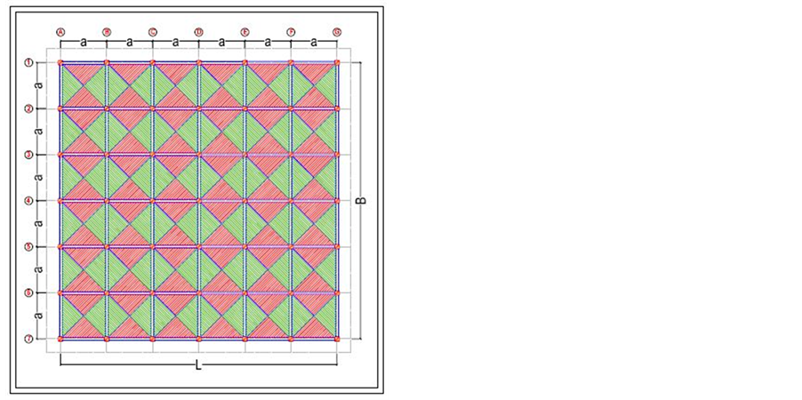 As mentioned in Table 1, total 36 numbers of square shaped building in plan and 92.00 m in height i.e. 25 (G + 24) storied buildings with the different base dimensions (L × B in Figure 1) ranging from 24 m × 24 m to 72 m × 72 m having 6 panels of bay width (a in Figure 1) 4 m to 12 m each are analyzed in this study to examine the effect of base dimensions in the period of vibration of the building, for mentioned building geometries of the building each building configuration is again analyzed by changing the size of the columns from 1.0 m × 1.0 m, 0.75 m × 0.75 m 0.6 m × 0.6 m and 0.5 m × 0.5 m.