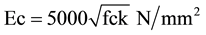 (Fck is characteristic cube strength of concrete in N/mm2).