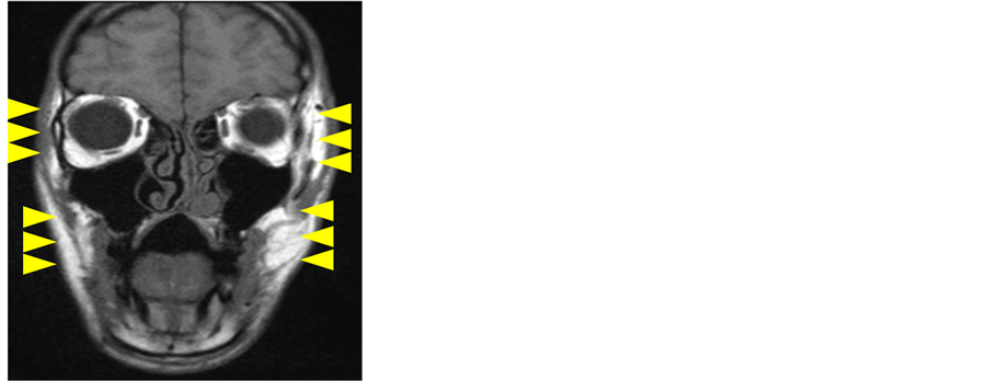 Figure 4. Postoperative MRI shows atrophy and poor development of bilateral masticatory muscles.