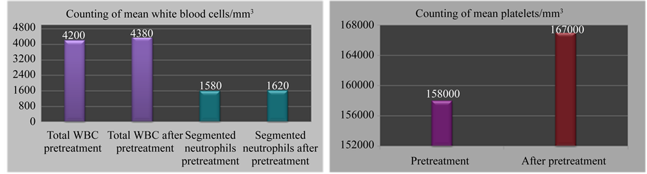 White blood cells, segmented neutrophils levels and counting of platelets are demonstrated in Figure 1.