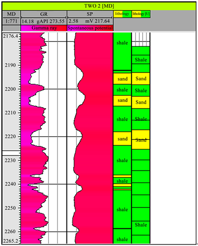From the log analysis shown in Figure 14 and Figure 15, we see that the well penetrates a sequence of sand and shale. This shows there were low stand events when sedimentation was dominated by fluvial processes and high stand events when sedimentation was dominated by lacustrine processes. Shale units are thicker than the sand units.