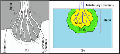 Figure 19. (a) Proposed depositional model [10] and (b) cartoon of depositional model.