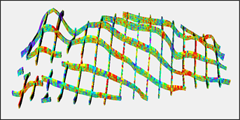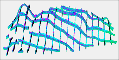 Fault data was imported in form of fault sticks as shown in Figure 5 and eleven faults have been modeled. The fault model is shown in Figure 6.