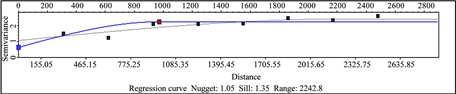 where, γ (h) is a semi variogram 2γ (h) is variogram, nh is the number of pairs of points with the distance