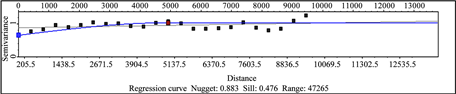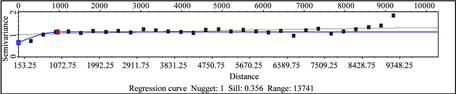 Figure 3. A variogram displaying variability between data points as a function of distance.