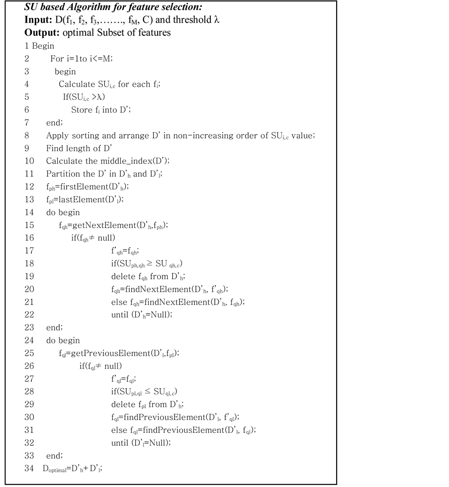 We are using the SU value for two main reasons: as we can see in step two, it can remove the attributes that have less SU value than predefined threshold λ because those attribute which are having high