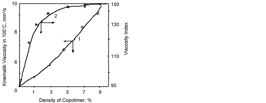 Some vinyl monomers―polyisobutylene, polyalkymethacrylates, vinyl and etc. are used as viscosity additives [1] [2] [3] . Viscosity additives, relatively high polymers or copolymers of vinyl monomers (M = 8000 - 12,000) are used in concentrations of up to 3%, and economically very beneficial. However, during operation they are subject to degradation and viscosity oil thickened by them falls below the minimum speed, which leads to premature failure of machinery.