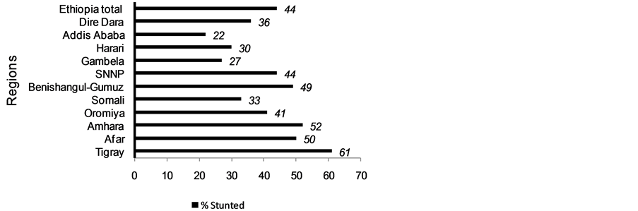 Figure 1. Stunting of children under five aged by regions of Ethiopia (Source: DHS 2011).