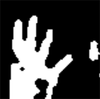 Basically, the first type of image (i.e., the first case) can be regarded as the signaling hand in cluttered backgrounds. Rather, the use of temporal relation is effective because the normal user will more intentionally vary the ROI hand from an initial status than the other body portions for the aim of signaling-by-hand. The logical exclusive-OR of two consecutive binarized frames can easily capture the maximum area of spatial consecutive 1’s (temporal different pixels) set as the region of dynamic ROI hand by an attention block. On the contrary, the second case, a simpler one, implies that the image could have already majorly be occupied by the signaling hand, so the maximum area of consecutive 1’s within the current framebinarized is masked with an appropriated attention block. Then, a best fit bounding box is generated by interlacing the shrinking and shifting on the attention block as a minimum rectangle to mask the signaling hand.