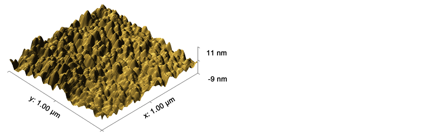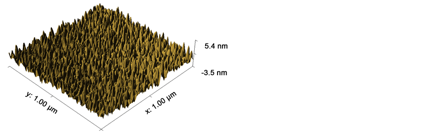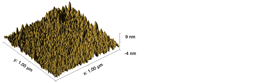 Topography of the surfaces inherent to the samples of both types was studied using an atomic-force microscope (Figure 5). It was ascertained that the structure of gold layer (Figure 5(b)) prepared using angular deposition with deposition angle 45 degree possesses more developed surface and, respectively, larger area of the surface