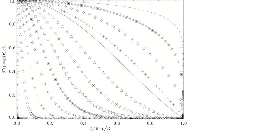 , reduces to Equation (21). Then a “vertical” inflection point of the Lane-Emden function takes place on the boundary. Accordingly, all Lane-Emden functions,