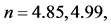 (diamonds), 1.5 (triangles), 2.0 (saltires), 2.5 (squares), 3.0 (asterisks), 3.5 (diamonds), 4.0 (crosses), 4.5 (triangles), 4.85 (dashed), 4.99 (saltires), starting from top right towards bottom left. Data are from seven-digit tables of Lane-Emden functions [12] except for