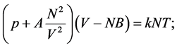 the ideal gas equation of state, Equation (1), and van der Waals’ equation of state, Equation (2), take the expression: