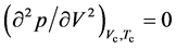 , can explicitly be expressed. Van der Waals isothermal curves may exhibit two extremum points (maximum and minimum), allowing a liquid phase, or no extremum point, allowing no liquid phase. The threshold relates to the critical isothermal curve, which shows a single extremum (horizontal inflection) point, where a liquid phase still occurs. The above mentioned inflection point is defined as critical point and related coordinates,