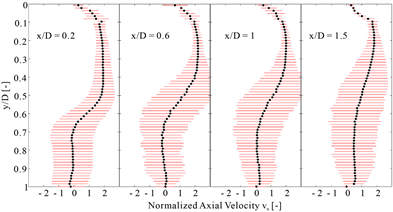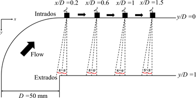 Table 1 shows the experimental conditions of the measurements. In case of axial plane measurements, there are four measurement positions at x/D = 0.2,