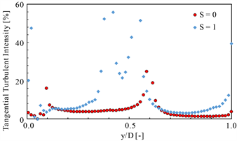 Figure 18 shows tangential turbulent intensity analysis. This graph indicates